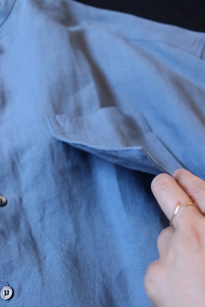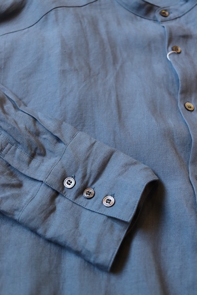 ヨーロッパリネンを原料に仕立てられた生地は ふくらみのある自然なワッシャー感が特徴。 肌触りもよく快適に着用いただけます。