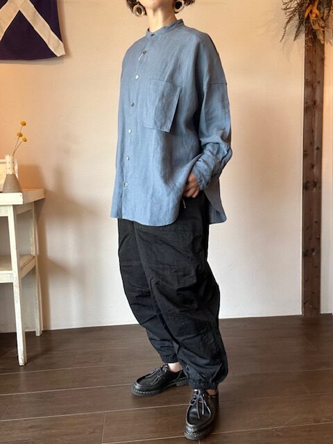 ゆとりのあるオーバーなサイジングやバンドカラーのデザインが 抜け感を演出。