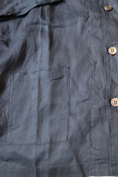リネンシャツの心地よさと、ジャケットの構築的なフォルムを併せ持つ一着です。