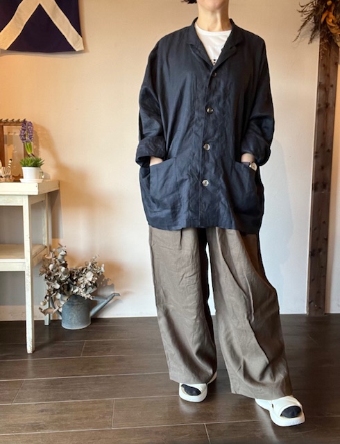 ヨーロッパリネンを原料に仕立てられた生地は ふくらみのある自然なワッシャー感が特徴のユニセックスのリネンジャケットです。