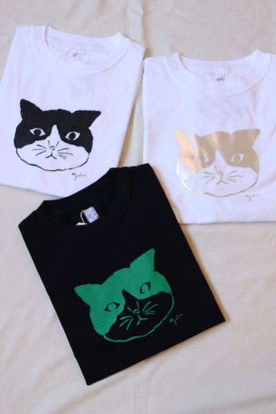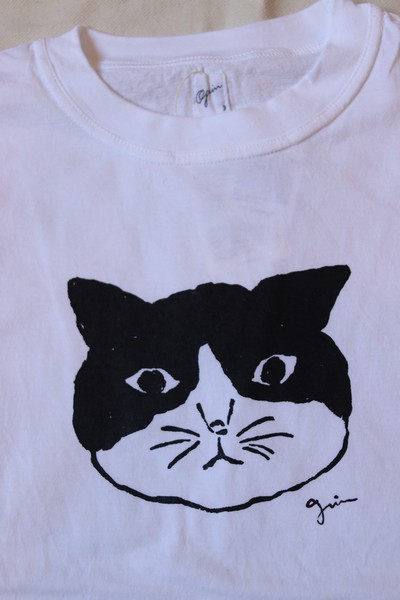 薄手でハリのある、肌離れのよいgrin定番の素材に、ねこプリント!