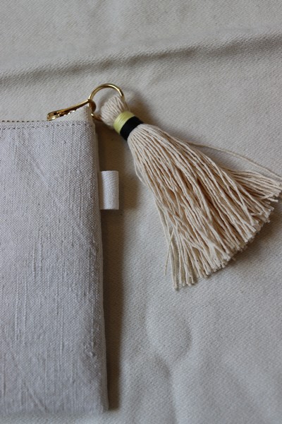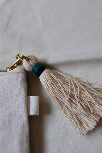地場の帆布残糸を使用して手作りしたタッセルも目を引くポイント!