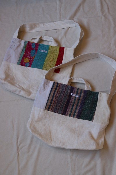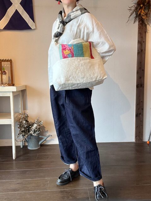 ユーズドのインドラリーキルト生地とフランスシーツをMIXしたトート&ショルダーBAG。