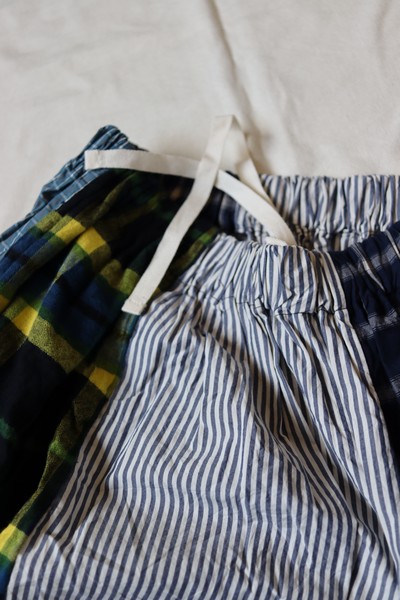 ウエストは総ゴムで調節可能な紐仕様、サイドには便利なポケットを付けました。