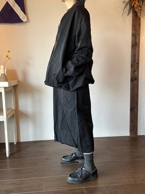 上品さもカジュアルさも兼ね備えた表情のあるセミマットな生地感は、コーディネートの幅も広く着こなせます。