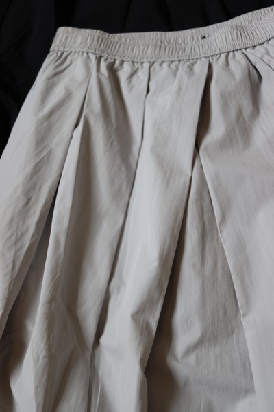 スポーティーなナイロン素材のロングタックスカート。
