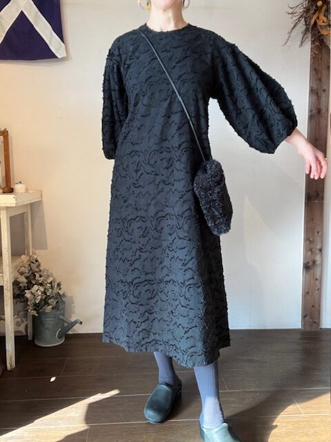 ソフトタッチなカットジャガードの8分袖ワンピース。