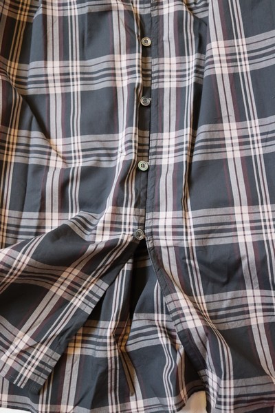 落ち着いたチェックに贅沢なギャザー使いが目を惹く一枚。