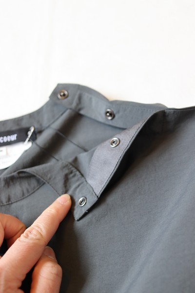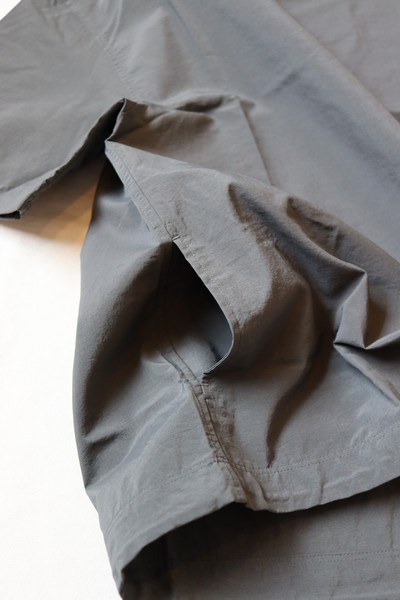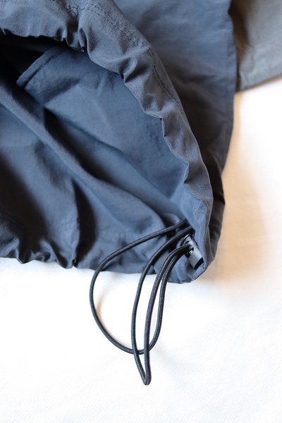 薄手で軽い着心地のナイロンタッサー素材です。顔料染めによる生地は、洗い込むほどに色落ちやアタリが生まれ独特のフェードをたのしむことができます。