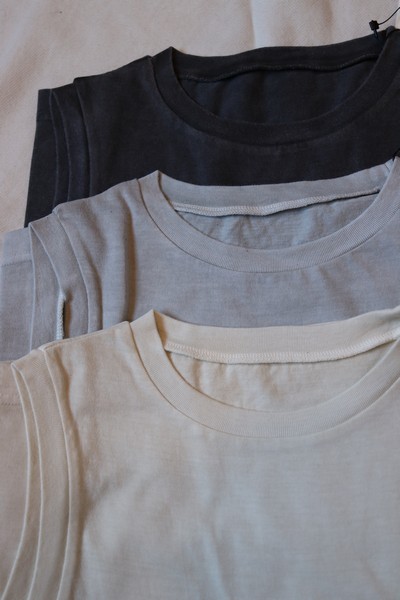 平らで伸縮性のある30/1 BASIC天竺を顔料染めし仕上げています。