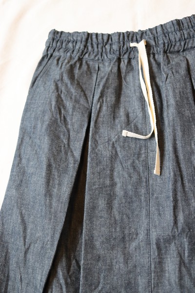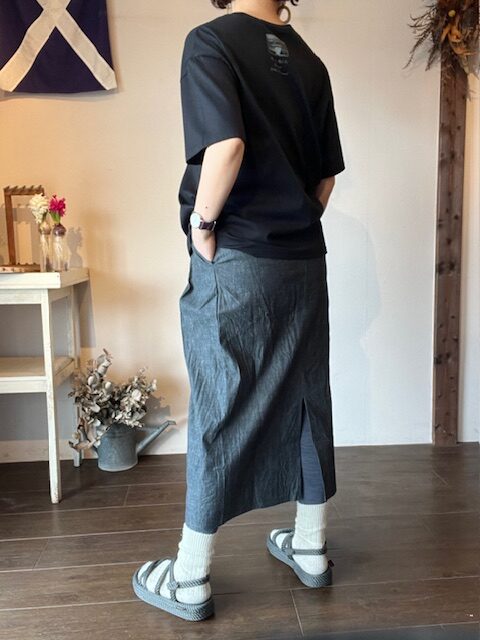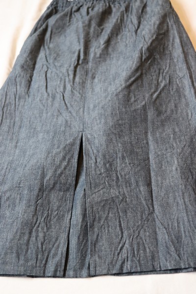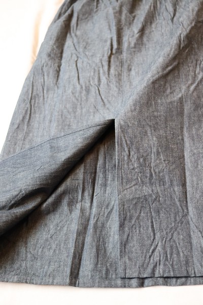 ハリ感が特徴のシャンブレー地を使用したロングスカート。